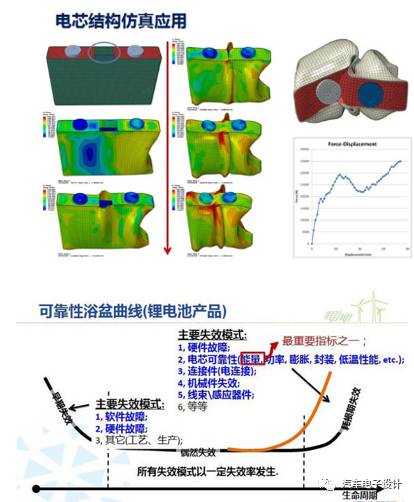 第一張圖反應(yīng)的是電芯受力的情況,模擬包括振動(dòng),沖擊,擠壓等多種工況,其實(shí)模擬的就是電芯殼體和蓋板在機(jī)械應(yīng)力累加時(shí)的失效情況,從而確定結(jié)構(gòu)件的設(shè)計(jì)尺寸,厚度及具體焊接的強(qiáng)度等,